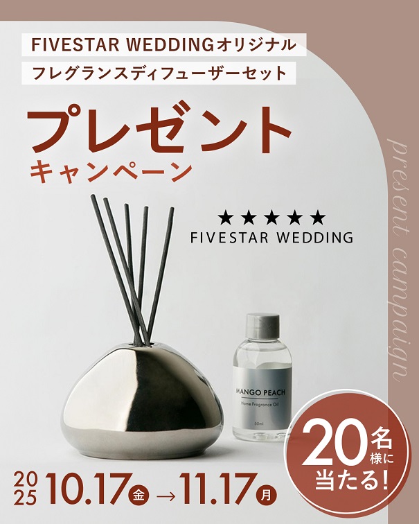 賞品:FIVESTAR WEDDINGオリジナル フレグランスディフューザーセット(20名様)