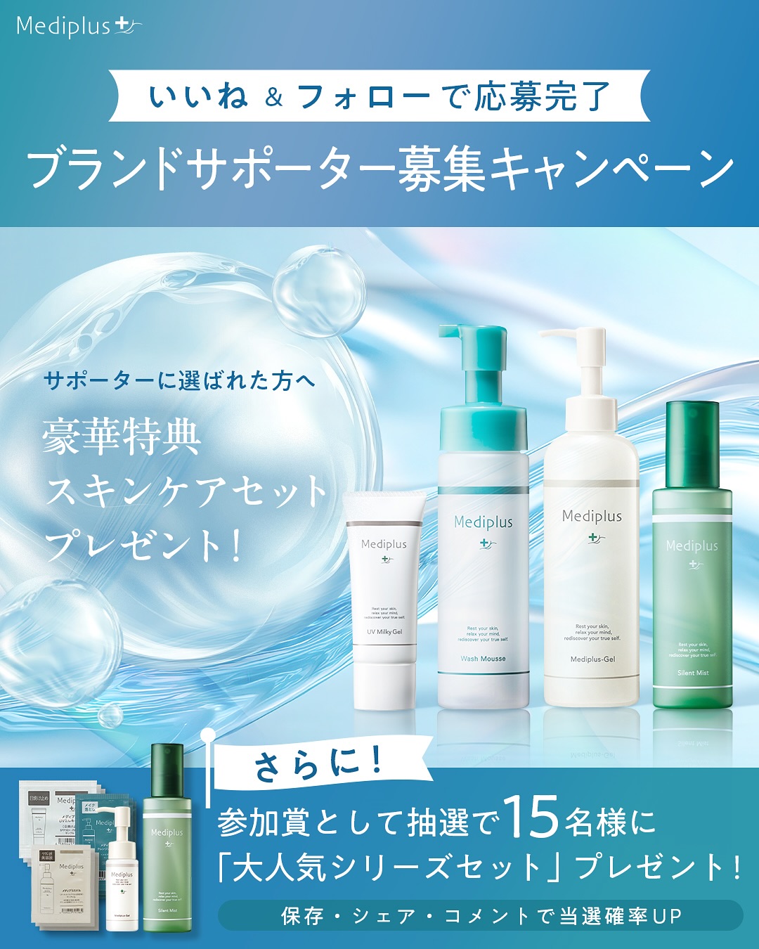 賞品:豪華スキンケアセット、大人気シリーズセット(合計25名様)