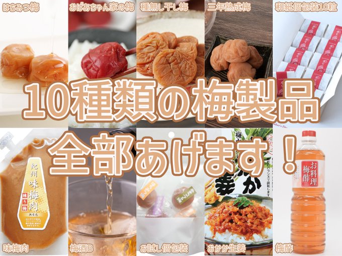 賞品:最高級梅干しを含む10種類の梅製品(2名様)