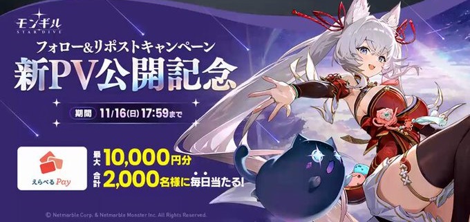 モンギル:STAR DIVE公式X(Twitter)アカウントをフォロー&キャンペーン対象ポストをリポストして、記載されているURLからご応募ください。
