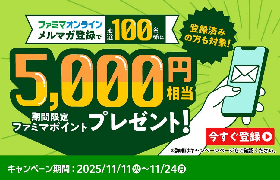 抽選で100名様にファミマポイント5,000円相当プレゼント