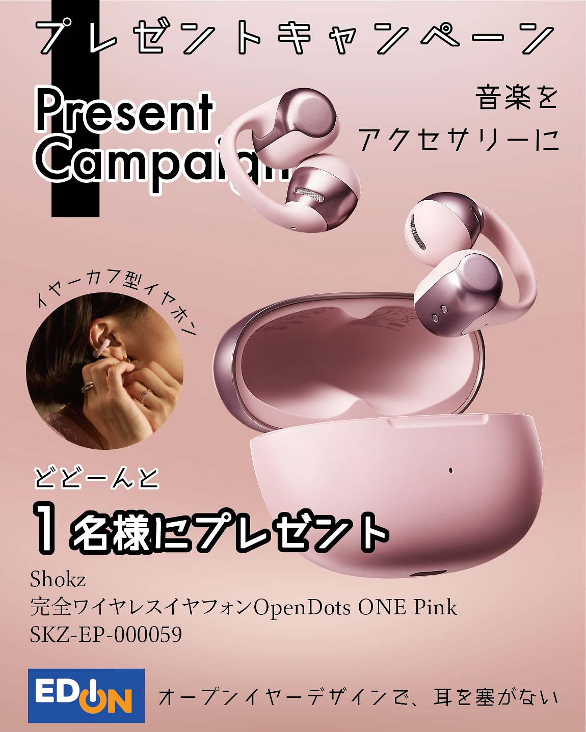 賞品:SHOKZ イヤーカフ型イヤホン OpenDots ONE(1名様)