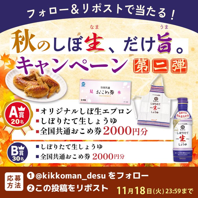 キッコーマン‐秋のしぼ生、だけ旨。キャンペーン
