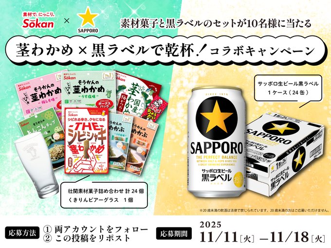 @PR_kukiwakameと@SapporoBeerをフォロー&キャンペーン対象ポストをリポストしてご応募ください。