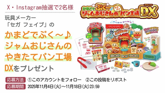賞品:かまどでぷく~♪ジャムおじさんのやきたてパン工場DX(2名様)