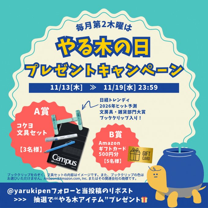 賞品:コクヨ文具セット、Amazonギフト券500円分(8名様)