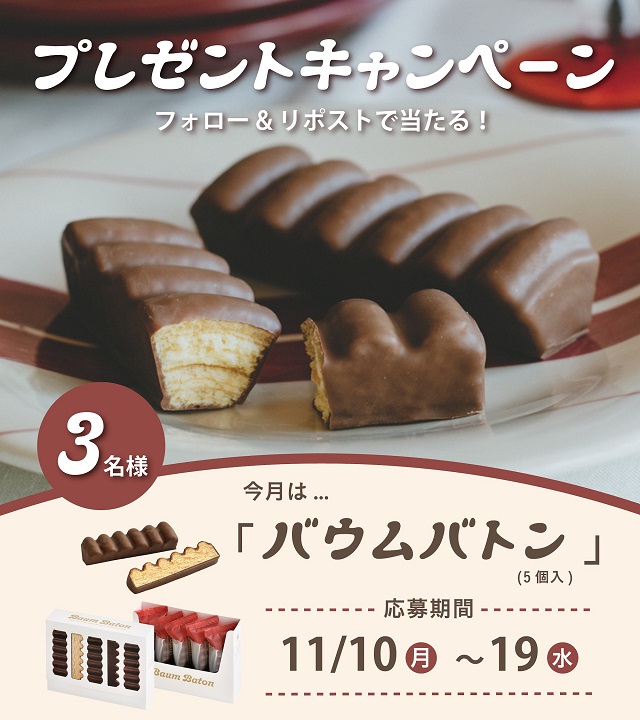 【X懸賞】ユーハイムのバウムバトンを3名様にプレゼント 2025.11.17ユーハイム‐プレゼントキャンペーン 賞品:ユーハイムのスラッシュゼロのお菓子(3名様) 締切:2025年11月19日(水)フォロー&コメントで、ユーハイムのスラッシュゼロのお菓子が3名様に当たる※詳細はキャンペーンページにてご確認ください。応募はこちらから