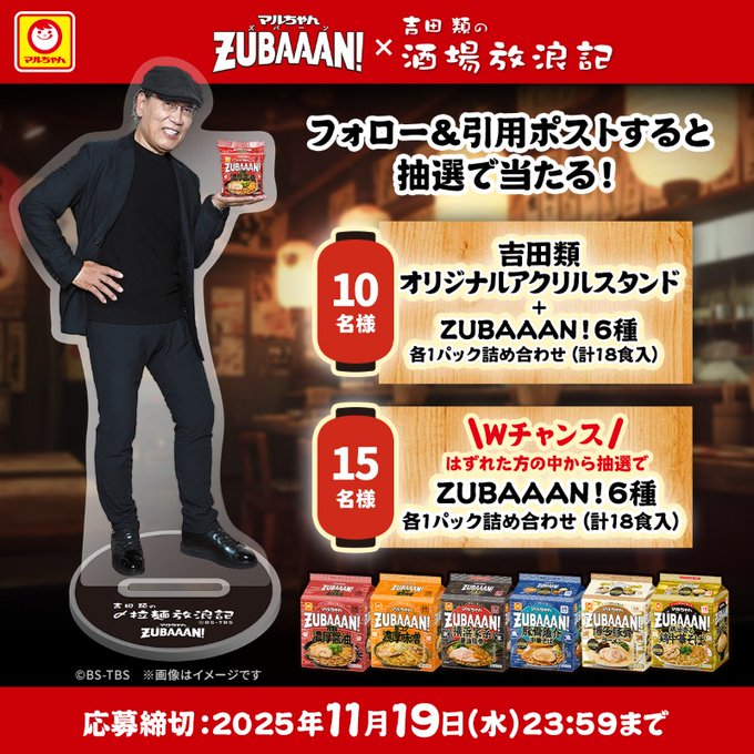 吉田類オリジナルアクリルスタンド+マルちゃん ZUBAAAN!6種 各 1 パック (10名様)