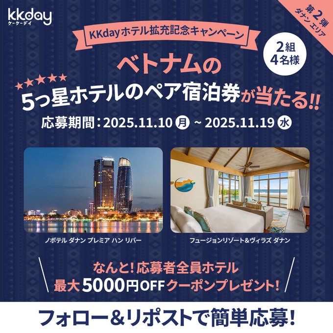 賞品:ベトナムの5つ星ホテル ペア宿泊券(2組4名様)