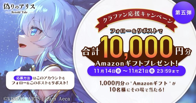 偽りのアリス公式X(Twitter)アカウントをフォロー&キャンペーン対象ポストをリポストして、記載されているURLからご応募ください。