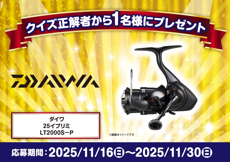 ダイワ 25イプリミLT2000S-Pを1名様にプレゼント 2025.11.18 2025.11.17キャスティング倶楽部‐今月のプレゼント 賞品:ダイワ 25イプリミLT2000S-P(1名様) 締切:2025年11月30日(日)ご応募には会員登録/ログインが必要です。※詳細はキャンペーンページにてご確認ください。応募はこちらから