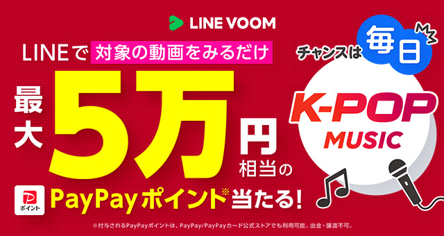 LINE VOOMでK-POP独占動画をみるとPayPayポイント最大5万円相当が当たる!