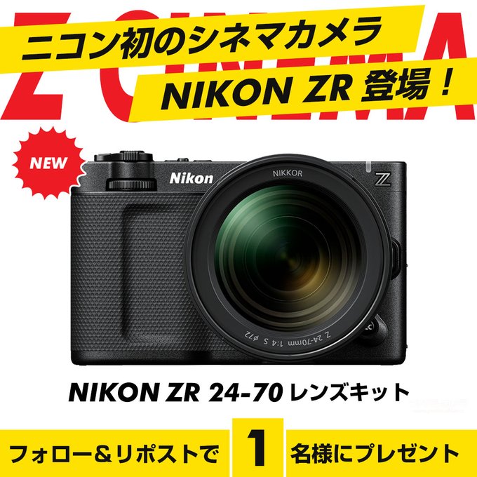 【X懸賞】ニコン ZR 24-70 レンズキットを1名様にプレゼント 2025.11.19ヨドバシ@映像機材専門‐プレゼントキャンペーン 賞品:ニコン ZR 24-70 レンズキット(1名様) 締切:2025年11月20日(木)👉動画 or 静止画 使いたい機能はどっち❓👉フォロー&リポスト※詳細はキャンペーンページにてご確認ください。応募はこちらから