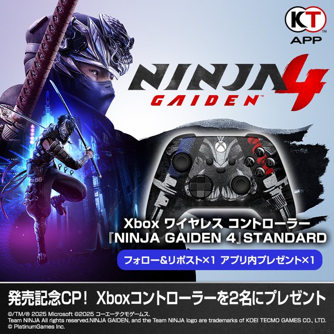 フォロー&RP or KT App内応募でXbox ワイヤレスコントローラー『NINJA GAIDEN 4』が当たる