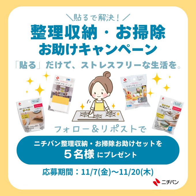 ニチバン株式会社 NICHIBAN CO.,LTD.‐「貼る」で解決!ストレスフリーな生活を!整理収納・お掃除お助けキャンペーン
