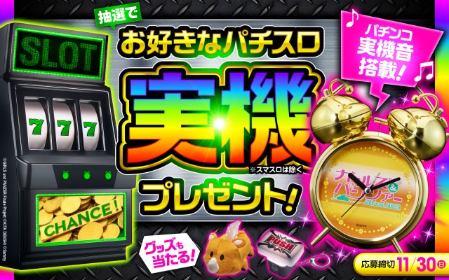 【アプリ】お好きなパチスロ実機、ガールズ&パンツァー金保留目覚まし時計、ツノっちティッシュカバーなどを合計13名様にプレゼント