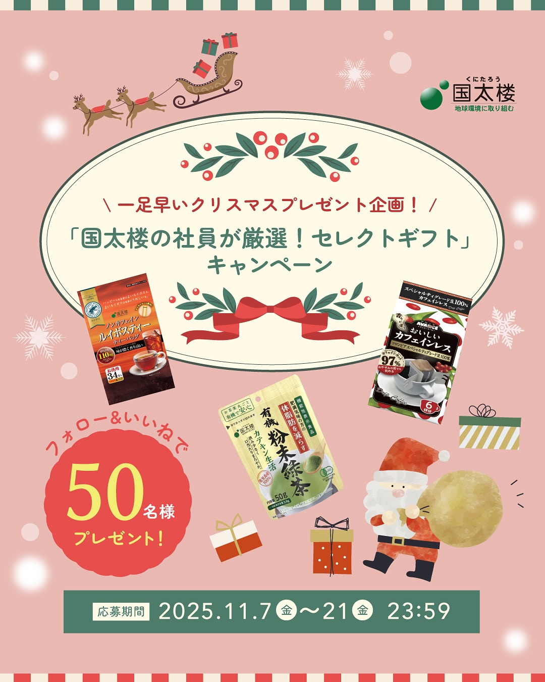 【Instagram懸賞】セレクトギフトを50名様にプレゼント 2025.11.20国太楼の社員が厳選!セレクトギフトキャンペーン 賞品:セレクトギフト(50名様) 締切:2025年11月21日(金)応募方法: 1. 公式Instagramアカウントをフォロー 2. 対象の投稿に「いいね!」※詳細はキャンペーンページにてご確認ください。応募はこちらから