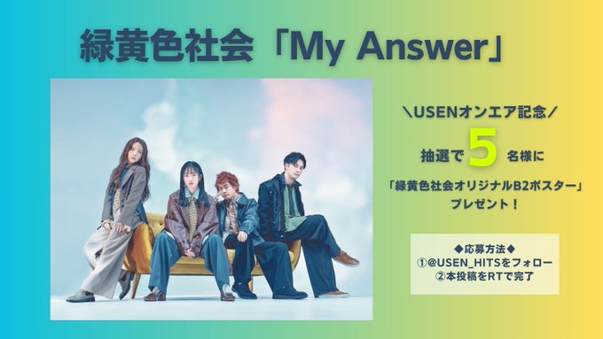 賞品:緑黄色社会オリジナルB2ポスター(5名様)