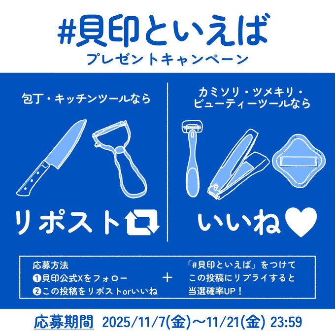 賞品:関孫六 マスターライン、キッチンツールセット、ビューティーツールセット(合計15名様)