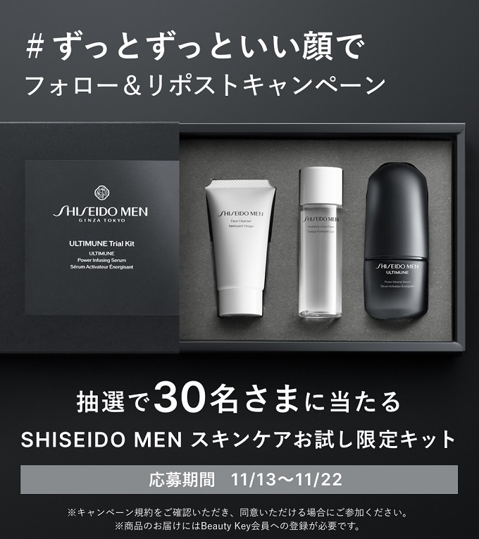 賞品:SHISEIDO MENのスキンケアトライアルキット(30名様)