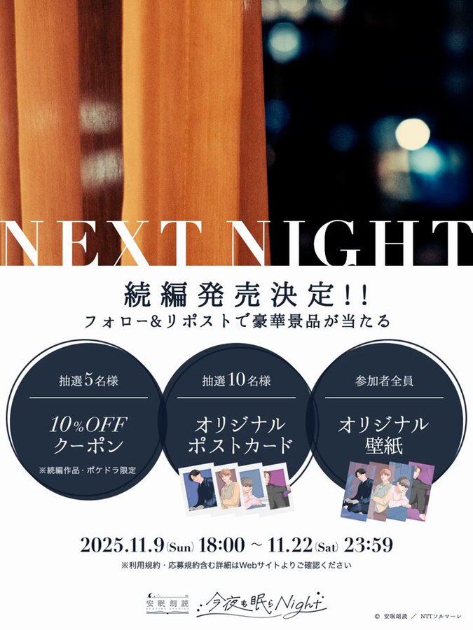 「ポケットドラマCD(ポケドラ)」でつかえる「今夜も眠らNight」続編10%OFFクーポン…5名様