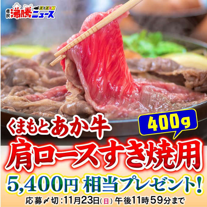 賞品:くまもとあか牛肩ロースすき焼用 (400g)(1名様)