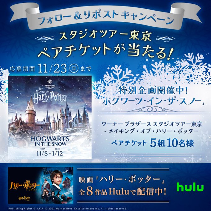 賞品:ワーナー ブラザース スタジオツアー東京 – メイキング・オブ・ハリー・ポッター ペアチケット(5組10名様)