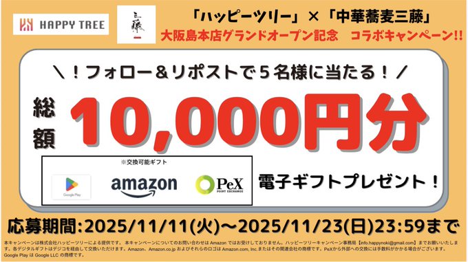 「ハッピーツリー」×「中華蕎麦三藤」 大阪島本店GO記念コラボキャンペーン