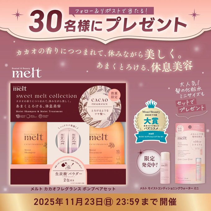 賞品:メルト カカオフレグランス ポンプペアセット(30名様)