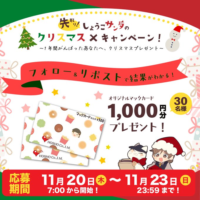 マクドナルドFC豊昇‐先取り!しょうこサンタのXフォロー&リポストキャンペーン 〜1年間がんばったあなたへ、 クリスマスプレゼント〜