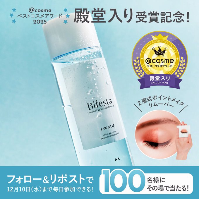 【毎日・X懸賞】ビフェスタ ミセラーアイメイクアップリムーバー145mlが100名様にその場で当たる!