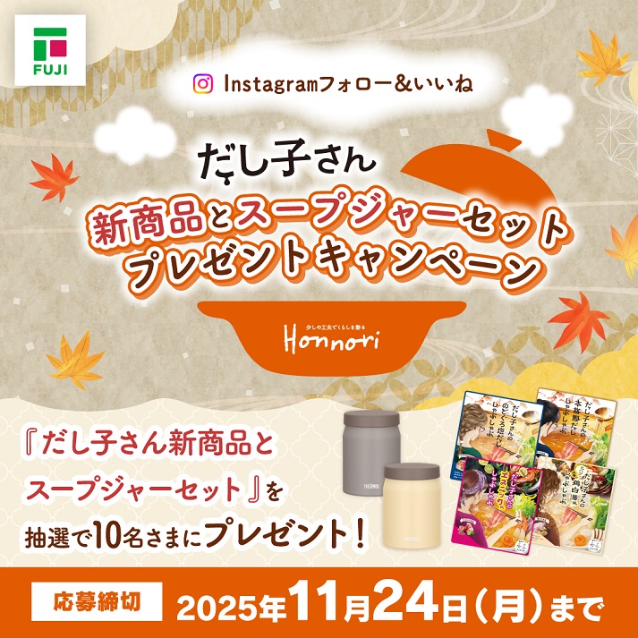 賞品:だし子さん新商品とスープジャーセット(10名様)