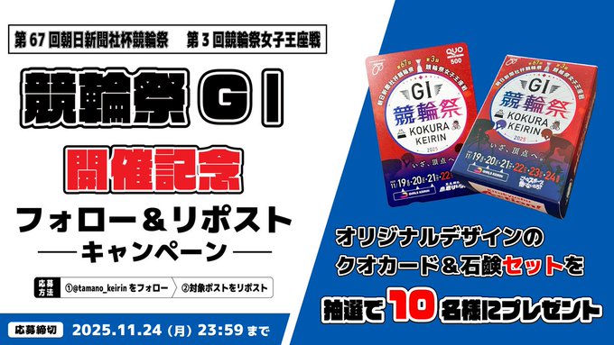 玉野けいりん‐小倉競輪「第67回 朝日新聞社杯 第3回 競輪祭女子王座戦 競輪祭GⅠ」開催キャンペーン
