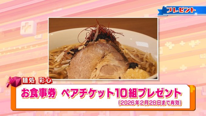 賞品:「麺処 彩心」で使用できるペア食事券(10名様)