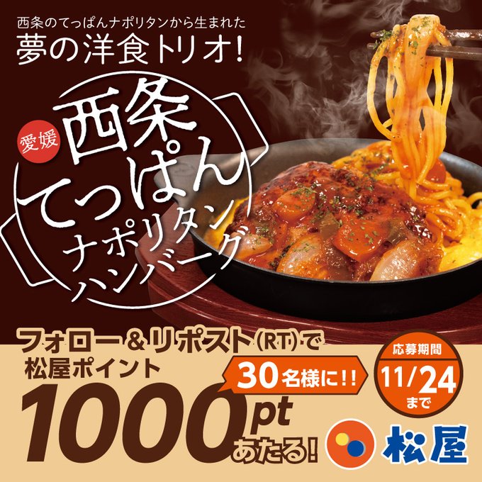 賞品:松屋フーズ公式アプリで使える『松屋ポイント1000pt』(30名様)