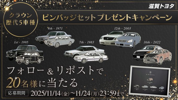 賞品:クラウン歴代5車種ピンバッジセット(20名様)