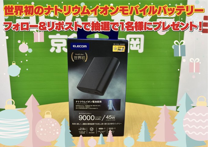 【X懸賞】エレコムのナトリウムイオン電池搭載モバイルバッテリーを1名様にプレゼント 2025.11.21ヨドバシ 京急上大岡店‐プレゼントキャンペーン 賞品:エレコムのナトリウムイオン電池搭載モバイルバッテリー(1名様) 締切:2025年11月24日(月)👉フォロー&RP👉今お使いのスマホは何年使っていますか?※詳細はキャンペーンページにてご確認ください。応募はこちらから
