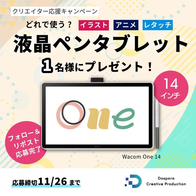 賞品:液晶ペンタブレット Wacom One 14(1名様)