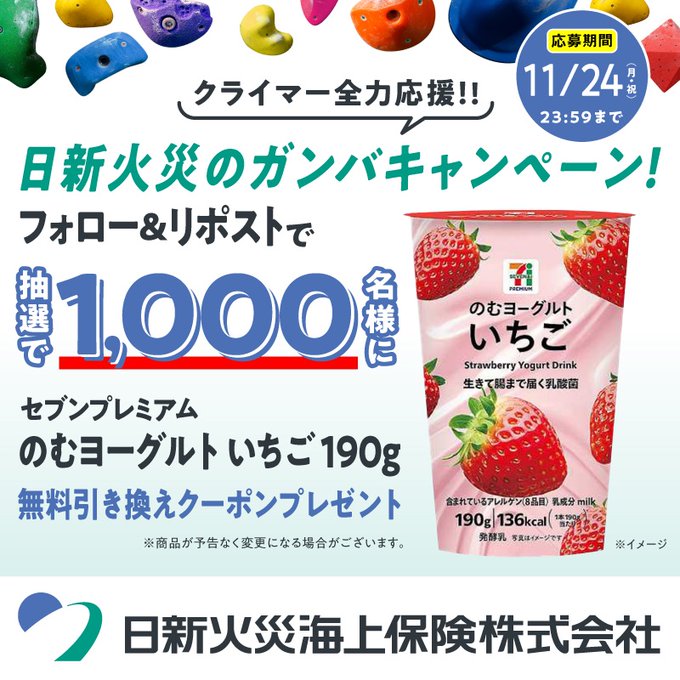 賞品:セブン-イレブン セブンプレミアム のむヨーグルト いちご 190g 引換券(1,000名様)