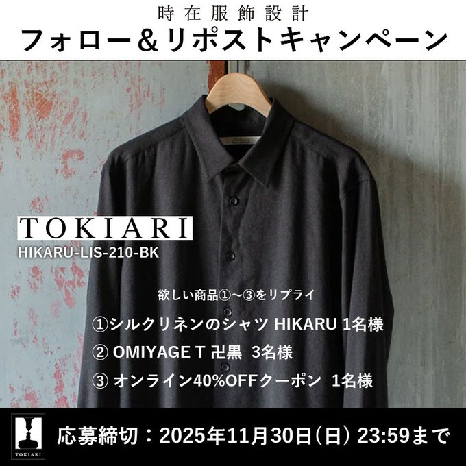 【X懸賞】シルクリネンのHIKARU、OMIYAGE T 卍黒、オンラインクーポンを合計10名様にプレゼント