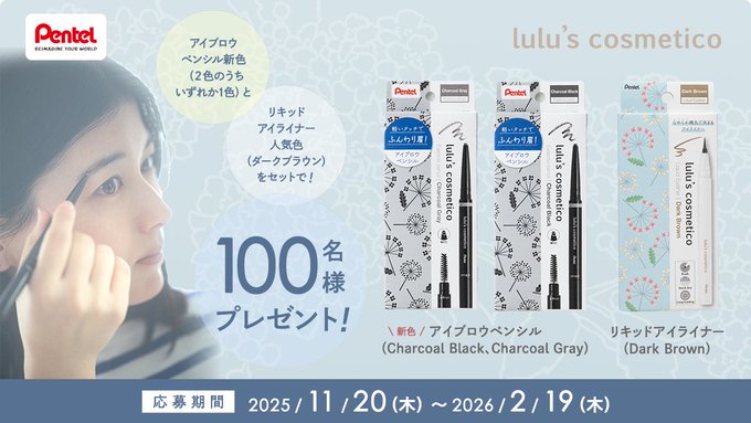 ぺんてる ルルズコスメティコ アイブロウペンシル&リキッドアイライナーを100名様にプレゼント