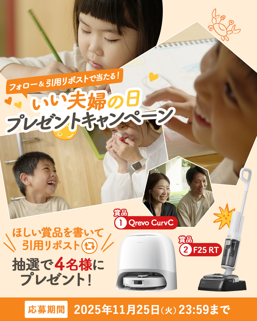 賞品:ロボロックの掃除機(4名様)
