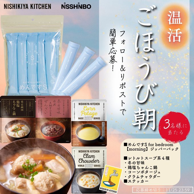 @nishikiyaと@NISSHINBO_PRをフォロー&キャンペーン対象ポストをリポストしてご応募ください。