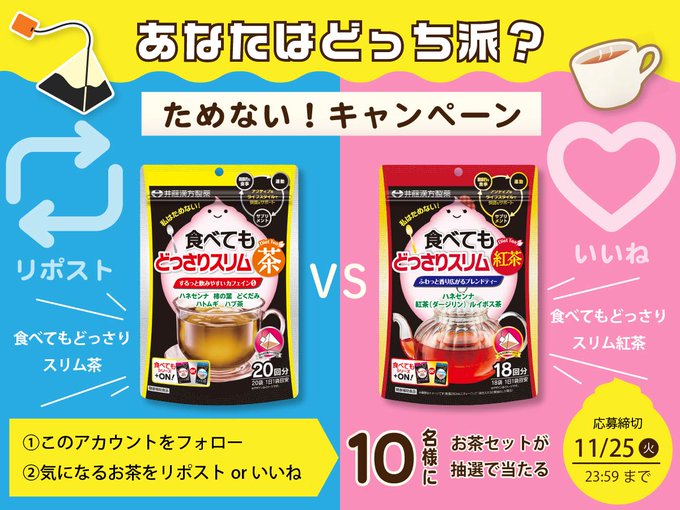 賞品:食べてもどっさりスリム茶&食べてもどっさりスリム紅茶(10名様)