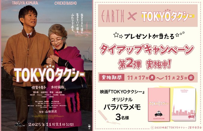 【X懸賞】映画『TOKYOタクシー』オリジナルパラパラメモを3名様にプレゼント