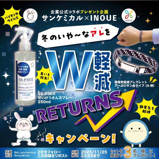 @InoueBraid @kk_sunchemical をフォロー&キャンペーン対象ポストをリポストしてご応募ください。