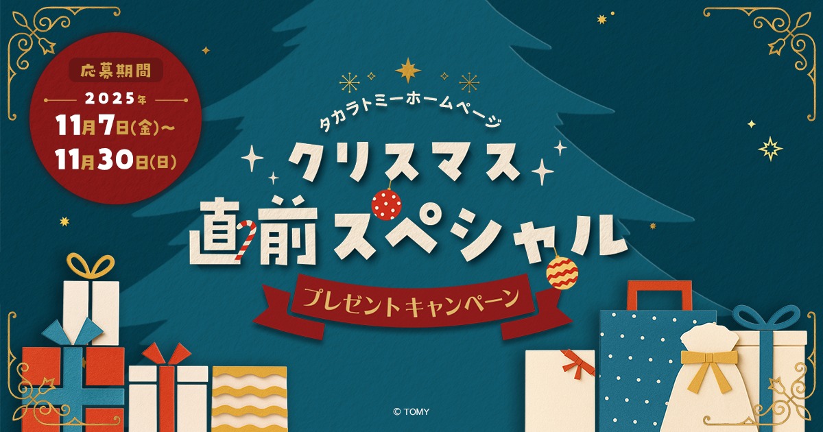 タカラトミーのおもちゃを合計40名様にプレゼント 2025.11.24タカラトミーホームページ プレゼントキャンペーン クリスマス直前スペシャル 賞品:タカラトミーのおもちゃ(合計40名様) 締切:2025年11月30日(日)アンケートに答えてご応募ください。※詳細はキャンペーンページにてご確認ください。応募はこちらから
