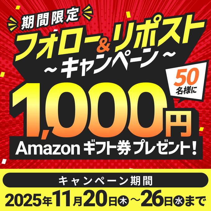 賞品:Amazonギフト券1,000円分(50名様)