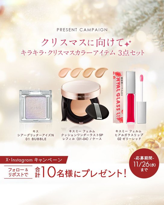 これからの季節にぴったりなメイクアイテムを、X・Instagram 合計10名様にプレゼント🎄✨