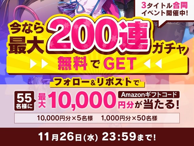 賞品:Amazonギフト券最大10,000円分(55名様)